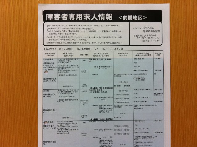 群馬県障害者雇用プロジェクトの職場開拓員の方からは、独自に開拓した求人の提供をして頂きます。