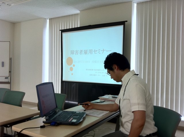講師は県より委託を受け障害者雇用の場を開拓しているヒューマンリソシア株式会社の西内様でした。
