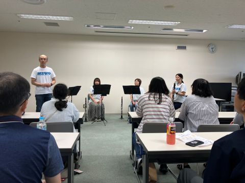 初めて見る楽器という方もいたようで、クラリネットとバスクラリネットの紹介で「おー!」と音の違いに驚かれる声もありました。