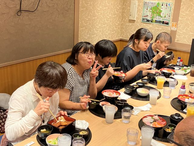 お昼時にお店を貸し切りにして頂き、皆でわいわいと楽しんで食事をしました。