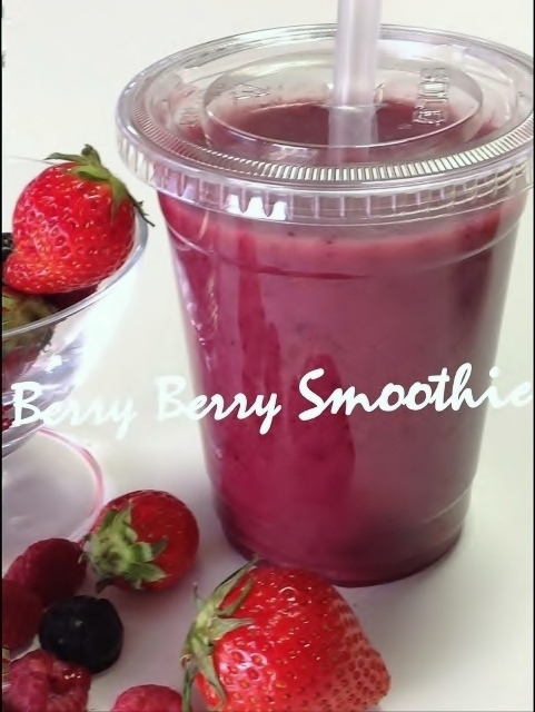 フレッシュいちごに、ブルーベリー、ラズベリー、バナナを加えたスムージー。