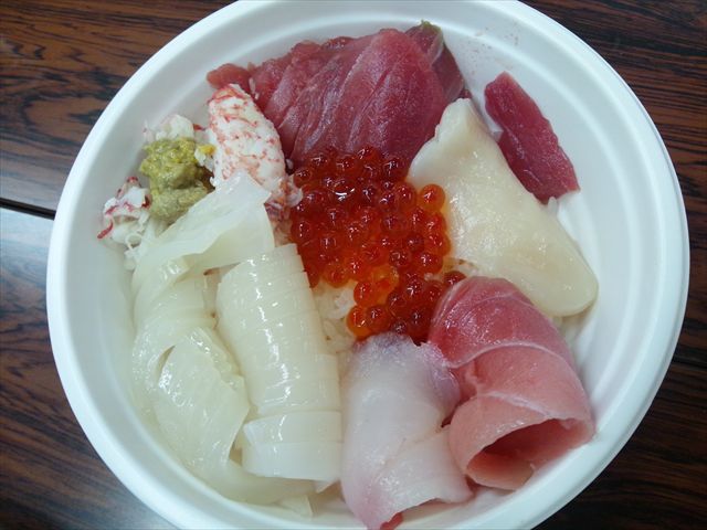 和商市場は勝手丼が名物。自分の好きな刺身を選んで乗せて丼を作ります。