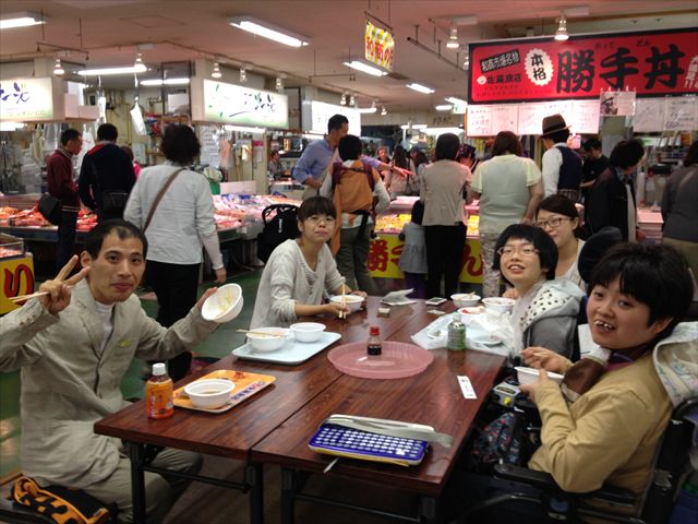 お昼は2班に別れて和商市場と鮭番屋に行きました。