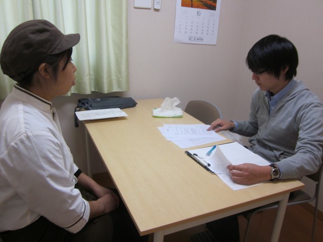 最初にワークセンターへ職員と一緒に来所され、就職への相談がスタート。